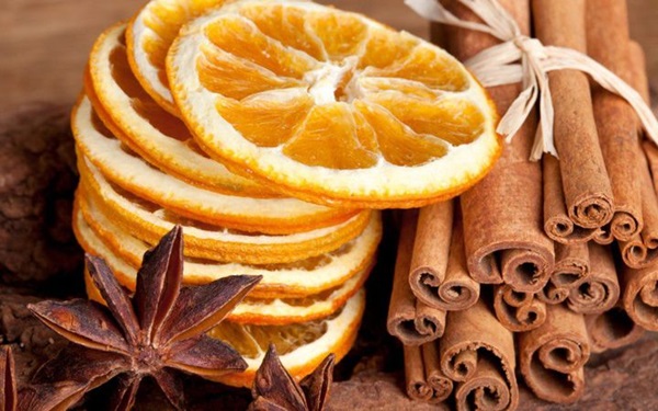 Для создания праздничной атмосферы нужно заранее позаботиться о натуральном ароматизаторе. Нарежьте апельсин кружочками и дайте ему подсохнуть. Ленточка, продетая сквозь апельсиновый кружок позволит повесить ароматное украшение не только на елку, но и разместить его в любой части квартиры. В сочетании с палочками корицы такой декор радует глаз и наполняет дом восхитительным ароматом праздника. Если нет палочек корицы, можно посыпать ломтики апельсина молотой корицей.