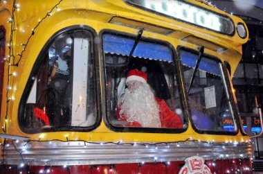 Нижний Новгород. 11 декабря 2018 года новогодний трамвай в Нижнем Новгороде вышел в свой первый рейс. Снаружи трамвай украшен гирляндами, а в салоне новогоднее настроение создают винтажные украшения. Водитель трамвая – Дед Мороз. Праздничную атмосферу создает музыкальное оформление от радиостанции «Ретро FM». Сегодня всем пассажирам, оплатившим проезд, дарят мандарины. Об этом сообщает управление по связям со СМИ администрации Нижнего Новгорода.
