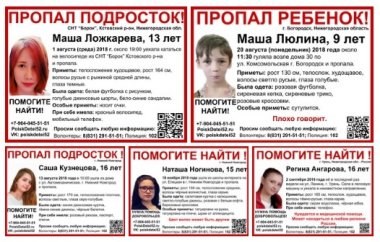 Нижний Новгород. Поисково-спасательный отряд «Волонтёр» сообщает о пропаже в 2018 году пяти девочек в Нижегородской области. Информации об их местонахождении в настоящее время до сих пор нет. Девочки исчезли бесследно.
