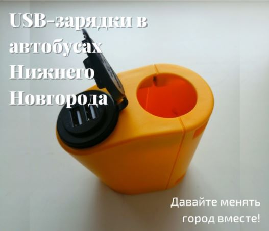 Проект нацелен на установку USB-зарядок в социальных автобусах Нижнего Новгорода. Эта общественная инициатива спасет от неприятных ситуаций в жизни, когда телефон разряжается в неподходящий момент, предоставив пассажирам возможность зарядить свой гаджет прямо в автобусе. Зарядные устройства представляют собой USB-разъем с креплением на поручне. Одна зарядка содержит два порта, что позволит заряжать два гаджета одновременно; а также предохранитель, который защитит ваши устройства от перепадов напряжения.