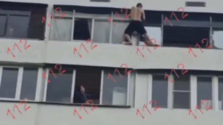 На кадрах запечатлен мужчина в одних шортах и босиком, который забрался на узкий выступ между соседними балконами. Он едва удерживается, чтобы не упасть. В чем цель мужчины – непонятно, он делает попытки забраться через балконное окно в соседнюю квартиру, однако не решается. Внизу стоят очевидцы, волнуются и снимают происходящее на видео.