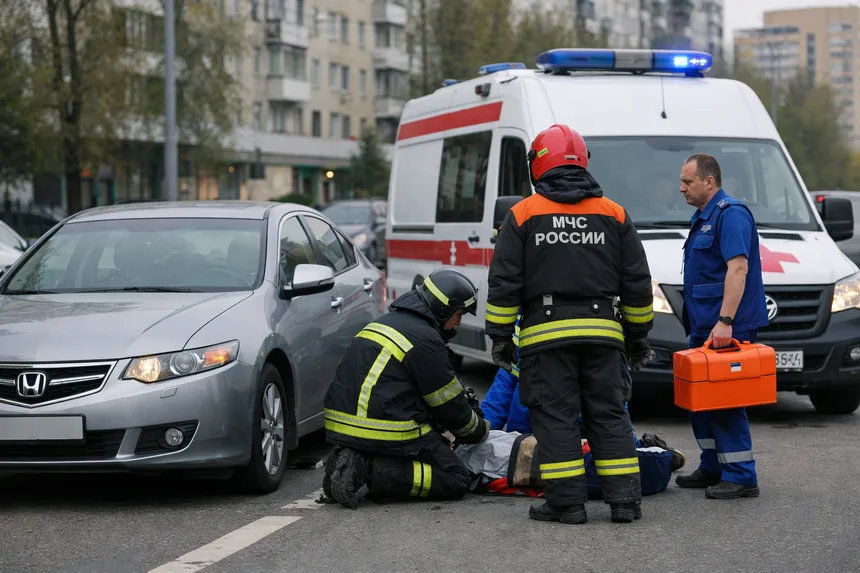 По информации СМИ, наезд совершил автомобиль Honda. Мужчину деблокировали спасатели, после чего его передали бригаде скорой помощи.