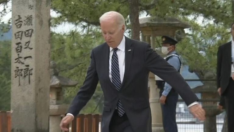 Курьезный эпизод произошел при посещении лидерами стран «Большой семерки» Святилища Ицукусима в Хиросиме. Президент США спускался по лестнице храма навстречу японскому премьер-министру Фумио Кисиде, и несколько раз оступился, едва не упав. А напоследок, как сообщает таблоида Daily Mail, вцепился в премьера, и только так сохранил равновесие.