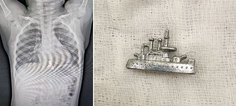 Создатели «Авроры» не предусмотрели, что ее могут проглотить дети, поэтому на детали конструктора были острые выступающие части. Врачи извлекали судно очень осторожно.