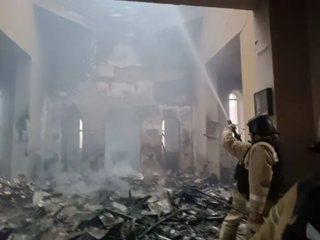 “В результате взрыва загорелся купол храма”, — уточнил губернатор, добавив, что пожар потушили.