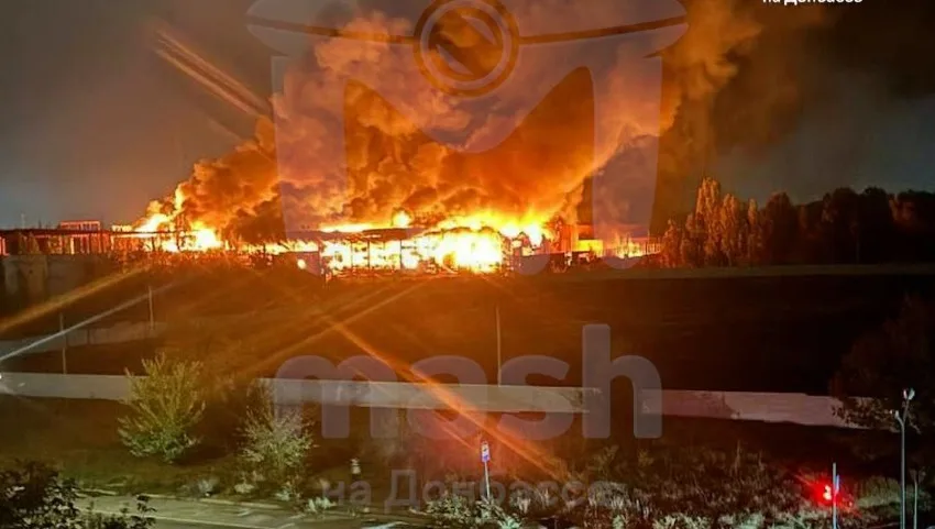 В местных социальных сетях очевидцы утверждают, что пожар возник в результате попадания украинского дрона. Эта информация официально не подтверждена.