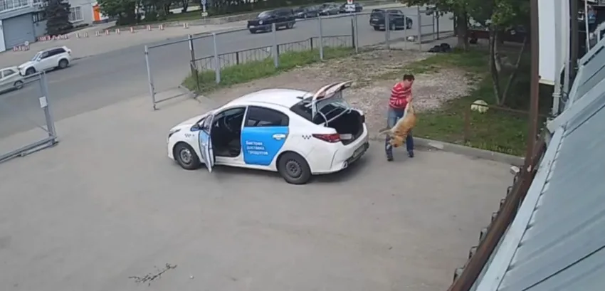 Сообщение проиллюстрировано видеозаписью, сделанной камерой наблюдения. На кадрах запечатлено, как 11 мая примерно в 13 часов 47 минут к зданию приюта подъезжает автомобиль «Яндекс. Лавки». Водитель выходит из машины, открывает багажник и за задние лапы вытаскивает оттуда рыжего пса. Мужчина резко швыряет собаку на газон, отчего она ударяется головой о бордюр.