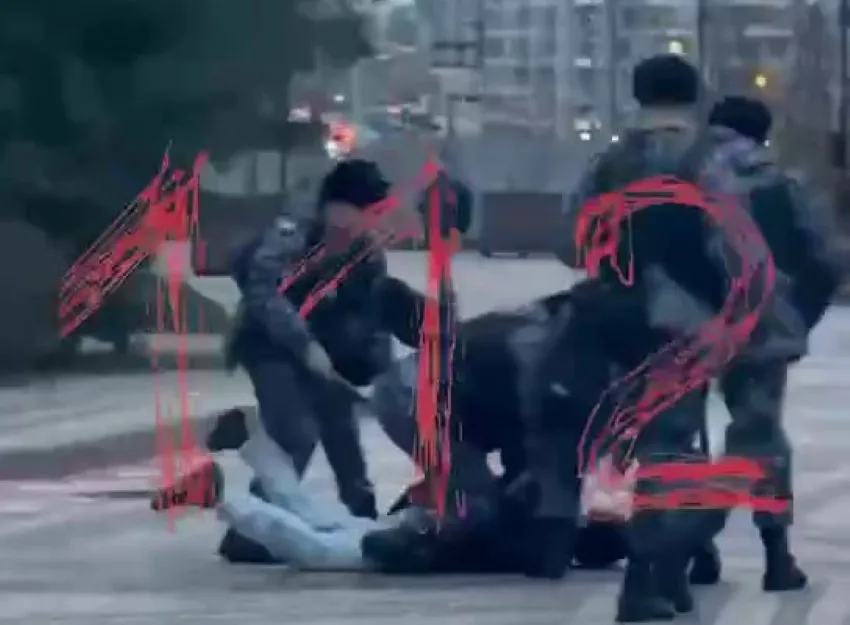 Публикация проиллюстрирована видеозаписью, которую сняли очевидцы. На кадрах видно, как росгвардейцы обезвреживают мужчину с ножом, повалив его на землю.