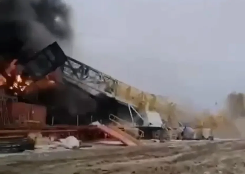 Очевидцы сделали видеозапись процесса обрушения горящей буровой вышки на объекте предприятия «Харампурнефтегаз» в Ямало-Ненецком автономном округе. Кадры катастрофы опубликовал Telegram-канал «112».
