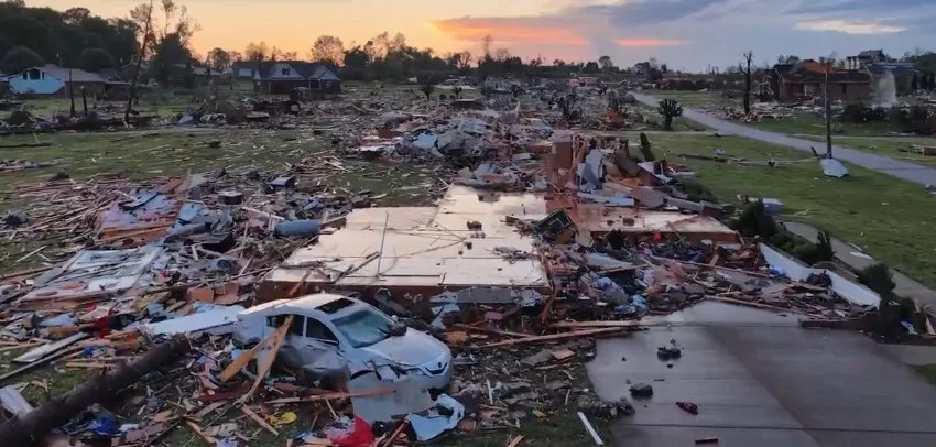 Свидетели прохождения мощных торнадо, обрушившихся на восток США, сделали видеозапись последствий разгула стихии. Кадры идущего смерча и разрушений после него опубликовал Telegram-канал «Плохие новости».