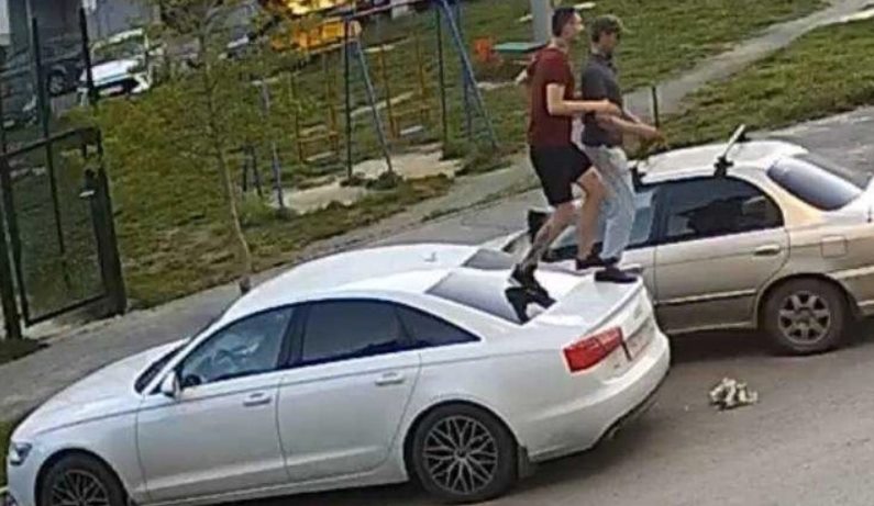 Отмечается, что во дворе молодые люди гуляли большой компанией, но на крыши автомобилей залезли только двое.