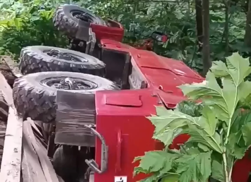 Сообщение проиллюстрировано видеозаписью, которую сняли местные жители. На кадрах можно увидеть пожарный автомобиль, который лежит на боку. Под ним и вокруг него разбросаны доски и бревна, из которых состоял рухнувший мост. За кадром слышны голоса очевидцев, обсуждающих происшествие.