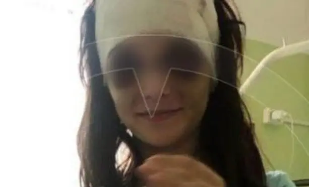 Девочку доставили в больницу с ушибом головного мозга. Из гематомы на лбу откачали жидкость, еще два крупных синяка появились в районе глаз.
