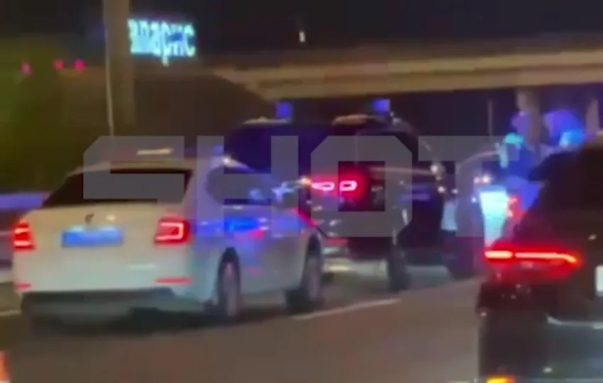 Очевидцы записали на видео, как в районе Киевского шоссе полицейские остановили автомобиль, на котором увезли похищенного Арега Щепихина с Ярославского вокзала в Москве. Кадры опубликовал Telegram-канал Shot.