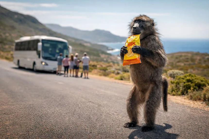 Ситуация закончилась мирно для здоровья граждан, однако привела к потере личных запасов продовольствия. Бабуин успешно вернулся к своей стае вместе с добычей. Подобная активность фауны требует от участников экскурсий повышенной бдительности и готовности к внезапным контактам с местной природой.