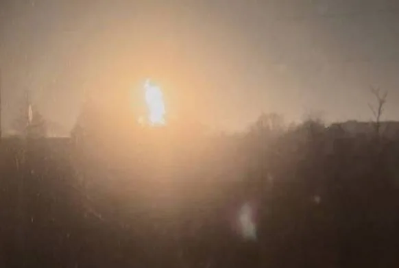 Очевидцы публикуют кадры масштабного пожара, охватившего стратегически важный объект. В небе над городом заметны вспышки, а густой дым поднимается высоко в ночное небо.