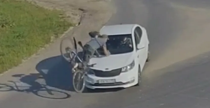 От удара велосипедист приземлился на лобовое стекло автомобиля, помяв его. Судя по видео, в результате ДТП никто не пострадал, кроме машины. Велосипедист слез с капота, поднял свой транспорт и отправился дальше, как ни в чем не бывало.