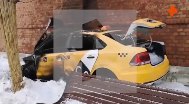 Машина такси врезалась в Китайгородскую стену в центре столицы и загорелась. Кадры с места происшествия опубликовал канал РЕН ТВ.