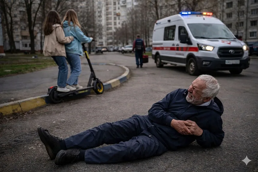 В московском районе Чертаново, в одном из дворов, две несовершеннолетние девушки на электросамокате сбили пожилого мужчину. После наезда они скрылись с места происшествия до прибытия бригады скорой помощи. Об инциденте 4 апреля сообщает Telegram-канал 112.