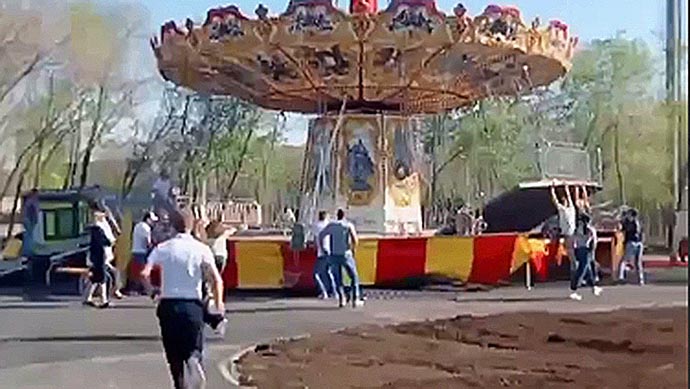 На аттракционе под названием «Вихрь» находились посетители. В основном, это были несовершеннолетние дети. В какой-то момент карусель накренилась и рухнула вниз. Находящиеся на ней люди упали на землю. На помощь сразу подскочили очевидцы, которые вызвали на место происшествия скорую помощь.