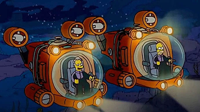 На большой глубине в батискафе закончился воздух. Гомер потерял сознание, и очнулся уже в больнице. В коме главный герой провел три дня. Тут же стоит отметить, что один из авторов сценария американского мультфильма Майк Райсс ранее действительно спускался к обломкам легендарного «Титаника». Причём, совершал он погружение к судну именно в «Титане».