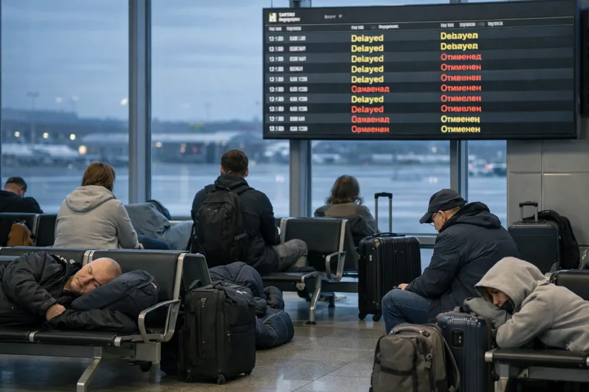 В аэропорту Шереметьево к утру сохранялись задержки и отмены рейсов, часть пассажиров оставалась в терминалах. По данным онлайн-табло на 08:00 мск, отменены 33 рейса, ещё около 60 перенесены на более позднее время.