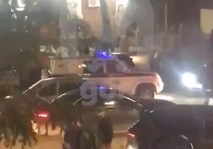 Пост проиллюстрирован видеозаписью, снятой очевидцами инцидента. На кадрах можно увидеть ночную площадь, заполненную обеспокоенными людьми. Стоят машины МВД с включенными мигалками.