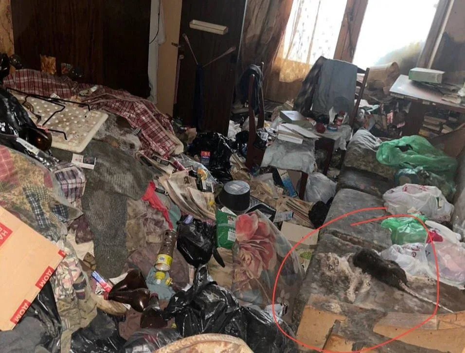 «Когда квартиру вскрыли, то выяснилось, что там почти год или более лежал труп человека. Трёхкомнатная квартира полностью завалена мусором до потолка, разлагающиеся трупы животных, личинки, тараканы и насекомые, сильнейший запах гниения». По словам соседей, тело вывезли, но мусор и антисанитария остались.