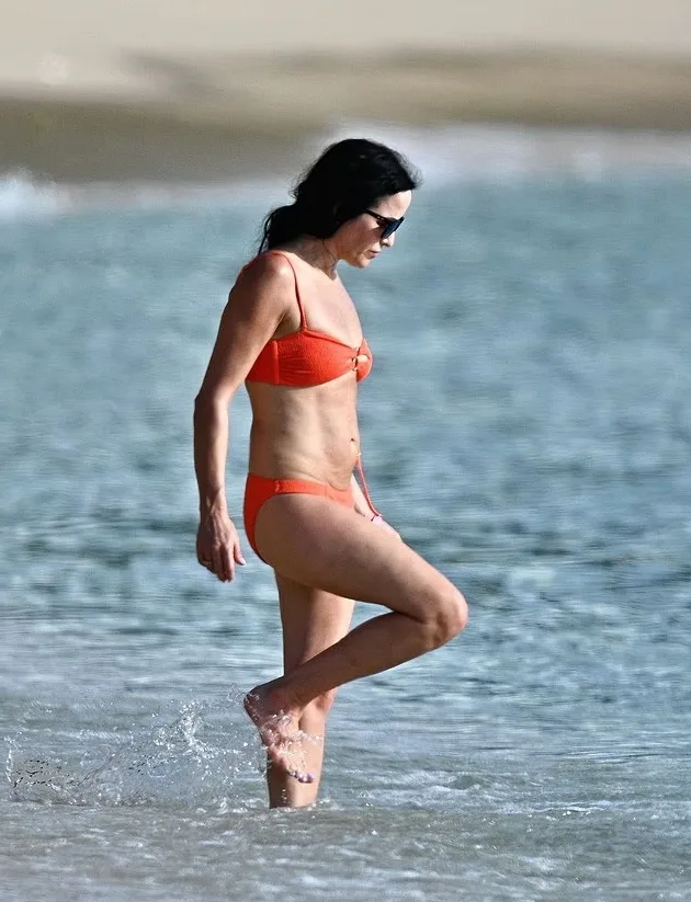 55-летняя звезда наслаждалась купанием в море, выбрав для пляжа ярко-красное бикини.