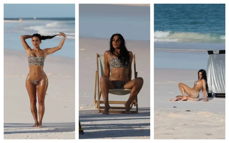 Ким Кардашьян снова привлекла внимание поклонников, снявшись в откровенной фотосессии на пляже. Снимки, опубликованные Page Six, демонстрируют 44-летнюю телезвезду в дерзком леопардовом бикини, подчёркивающем её фигуру.