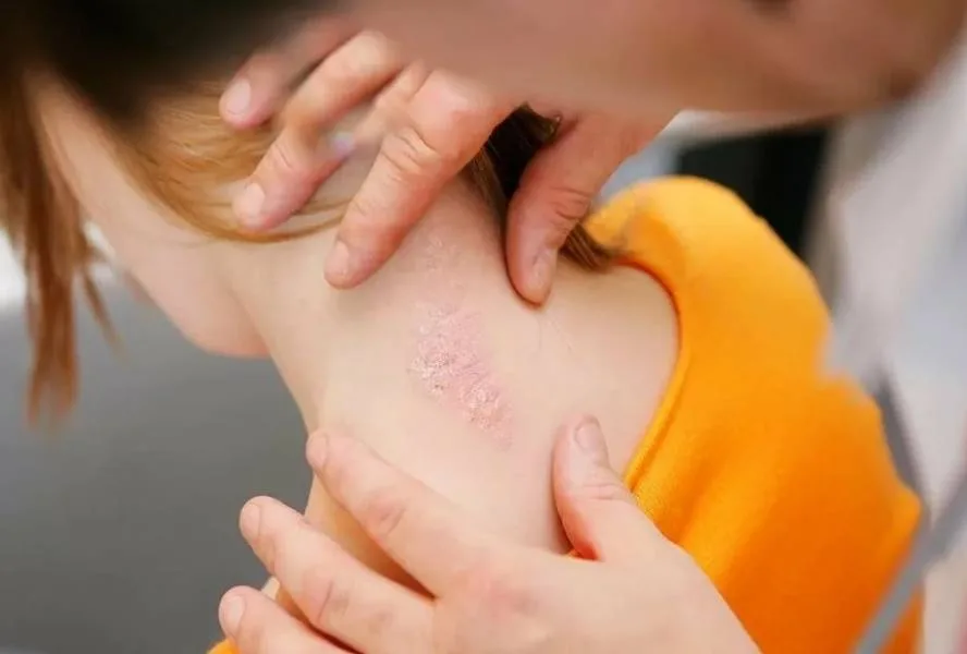 Характерными симптомами псориаза являются ярко-розовые высыпания на коже, которые имеют вид папул и бляшек, покрытых серебристо-белыми чешуйками. Эти образования склонны к слиянию и могут вызывать зуд и чувство стянутости кожи. Высыпания чаще всего локализуются на волосистой части головы, локтях и коленях, а также в области поясницы и крестца, но могут появляться и на других участках тела.
