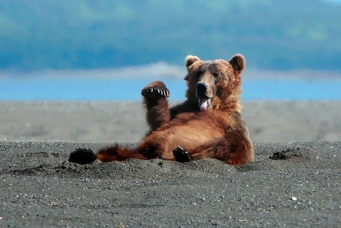 В бухте Тихая на Сахалине, популярной у туристов и местных жителей, неожиданным гостем стал медведь.