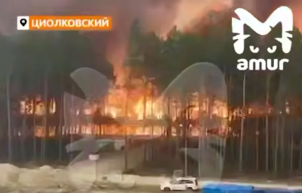 Лесной пожар вплотную подошёл к городу Циолковский в Амурской области. Пламя окружило населённый пункт, расположенный рядом с космодромом Восточный. В нескольких районах уже полыхают постройки, к микрорайону Звёздный стремительно движется стена огня.