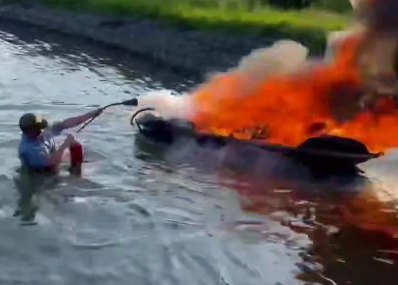 В какой-то момент техника вспыхнула и взорвалась, предположительно из-за неисправности топливной системы.