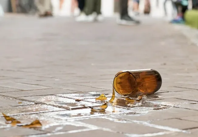 Среди разбитых бутылок остались уцелевшие, которые начали собирать прохожие.