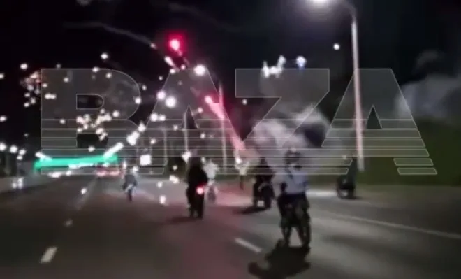 На кадрах, попавших в соцсети, видно, как один из пит-байков едет с включённым фейерверком, который выстреливает прямо из рулевой части. Огонь и искры сопровождают движение по оживлённой магистрали, создавая угрозу для других участников дорожного движения, сообщает тг-канал Baza.
