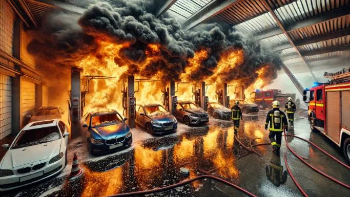 Тушение огня потребовало значительных усилий, так как внутри здания могло находиться оборудование и химические вещества, используемые в процессе очистки автотранспорта.