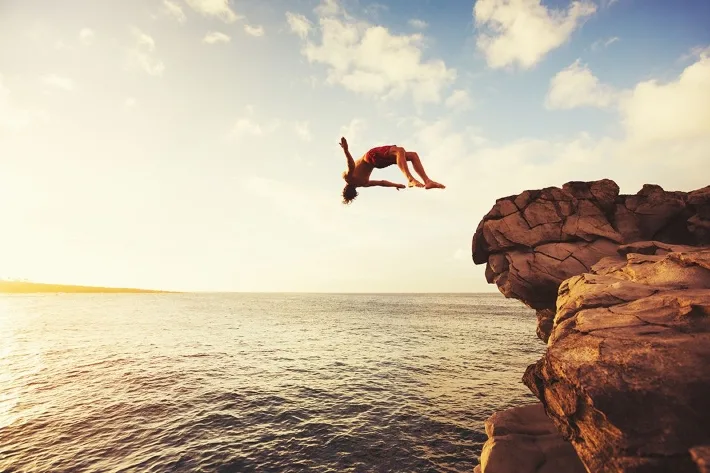 В Норильске на Красных камнях мужчина совершил опасный прыжок с водопада, высота которого сопоставима с пятиэтажным домом.