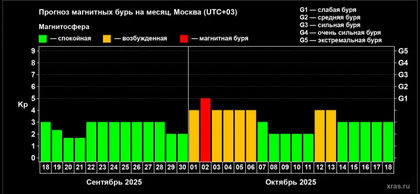 В октябре Нижний Новгород может столкнуться с последствиями магнитной бури. По данным Лаборатории солнечной астрономии ИКИ и ИСЗФ, возмущение геомагнитного поля в следующем месяце достигнет уровня G1.