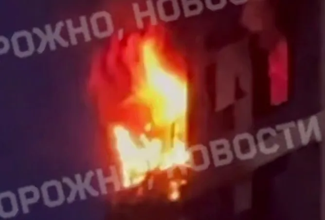 Минувшей ночью в Красногорске, по данным «Осторожно, новости», в результате удара беспилотника, предположительно запущенного ВСУ, загорелась квартира на последнем этаже жилого дома.