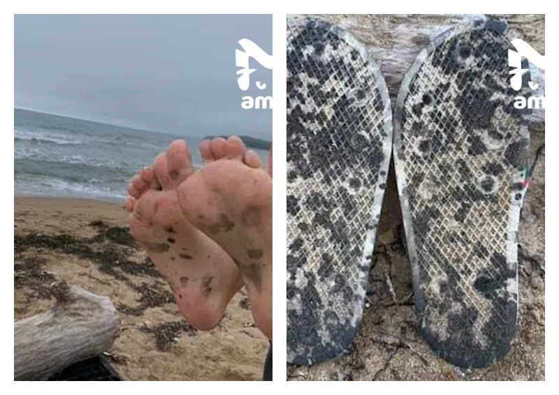 Однако теперь пляжный сезон оказался под угрозой. По словам очевидцев, в воде появилась нефтяная пленка, которая оседает на теле и вещах тонким липким слоем.