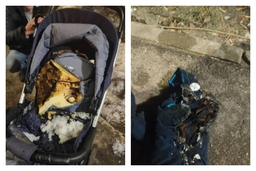Неизвестный с собакой, не проживающий в многоэтажном доме, зашел в один из подъездов и поджег детскую коляску. Хозяин коляски вышел и попытался потушить пламя, но поджигатель скрылся.