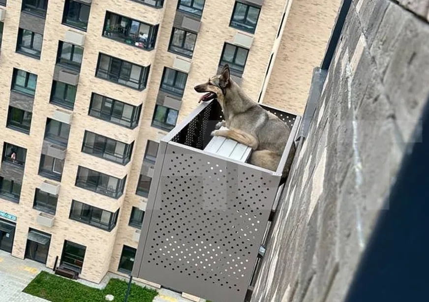 По данным SHOT, инцидент произошёл в жилом комплексе «Уюн-парк». Собака вывалилась из окна, когда хозяйки не было дома, и чудом застряла в кондиционерном коробе на уровне 11-го этажа.