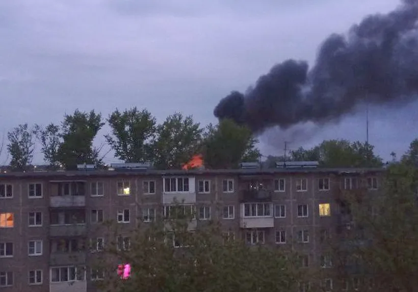 Возгорание произошло вечером 15 мая на улице Промышленная. Площадь пожара оценивается в 1500 квадратных метров. Над местом происшествия поднимается густой столб дыма, который заметен за несколько километров.