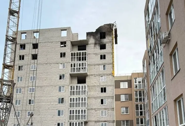 В Ельце Липецкой области вражеский беспилотник попал в строящуюся секцию многоквартирного дома.