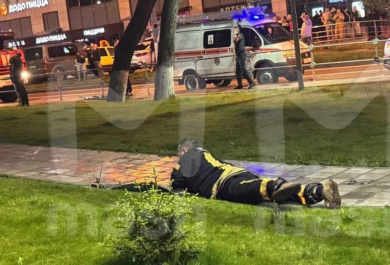 SHOT показал видео с места падения обломков украинского беспилотника, ударившего по жилому дому в Красногорске.