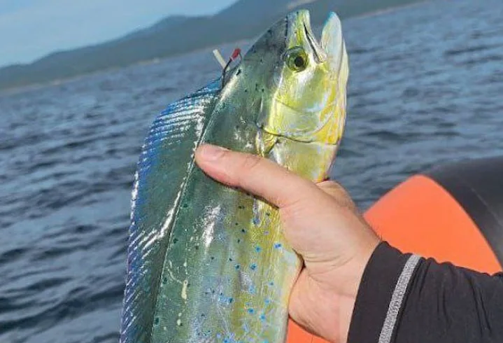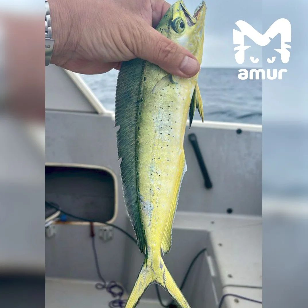 В Приморье рыбаки выловили необычную для этих мест тропическую рыбу — золотую макрель, известную также как корифена. Добычу удалось поймать у Верховских островов на пилькер.