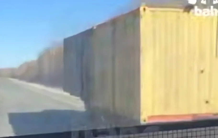 На федеральной трассе Р-258 в Забайкалье зафиксировали грузовик, тащивший сразу пять контейнеров, установленных поперёк платформы.