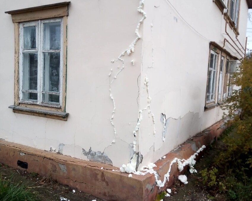 Жилой двухэтажный дом в Сокольском районе Нижегородской области отремонтировали с помощью монтажной пены. Рабочие залили её в трещины, которые пошли по фасаду здания практически сразу после ремонта. Об этом сообщили жители рабочего посёлка в социальной сети.
