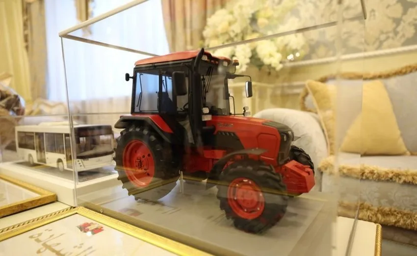 Ливия получила 10 автобусов «МАЗ 206» и столько же тракторов «BЕLARUS 820». Помимо сертификатов на технику, Лукашенко подарил Хафтару корзину с набором продуктов белорусского производства. В ответ ливийский фельдмаршал преподнес белорусскому лидеру саблю как знак признательности за гуманитарную помощь.